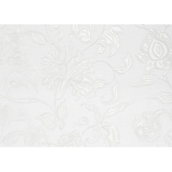 The wallpaper material is PVC, it is the most common wallpaper. It has many functions, such as fireproof, heat Insulation, mould-proof, anti-static and so on. The color of the wallpaper is white. The pattern of the wallpaper is floral, it’s suitable the decoration of living room and bedding room.