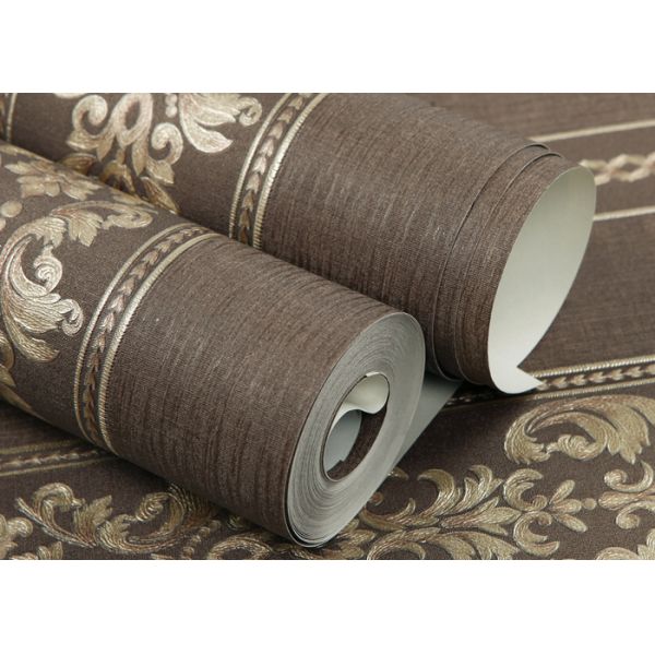 Brown European Style Wallpaper PVC Embossed Floral Home Decorative Wallcovering