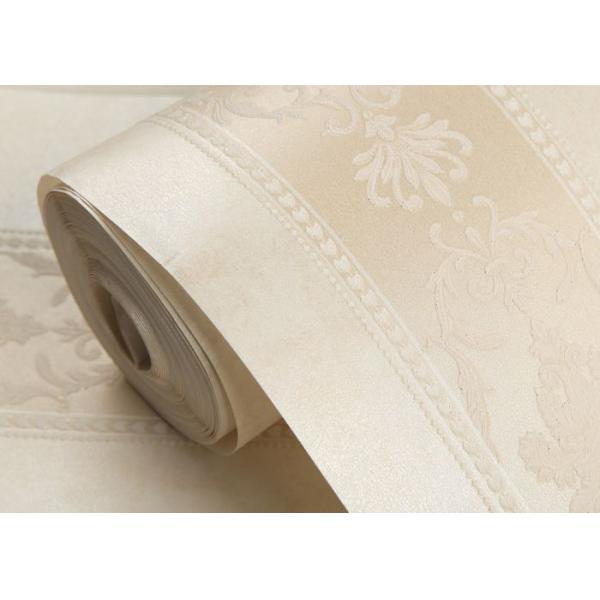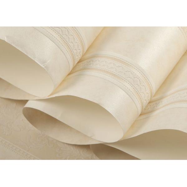 Beige Damask Pattern Non Woven Wallpaper / Embossed Living Room Striped Wallpaper Images |